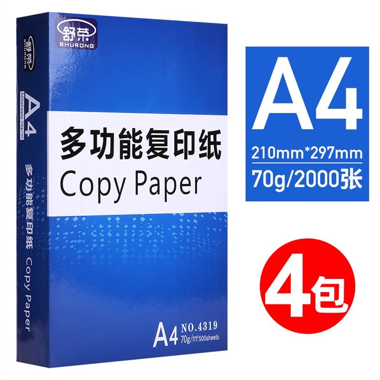 A4打印复印纸白纸70g整箱4包装